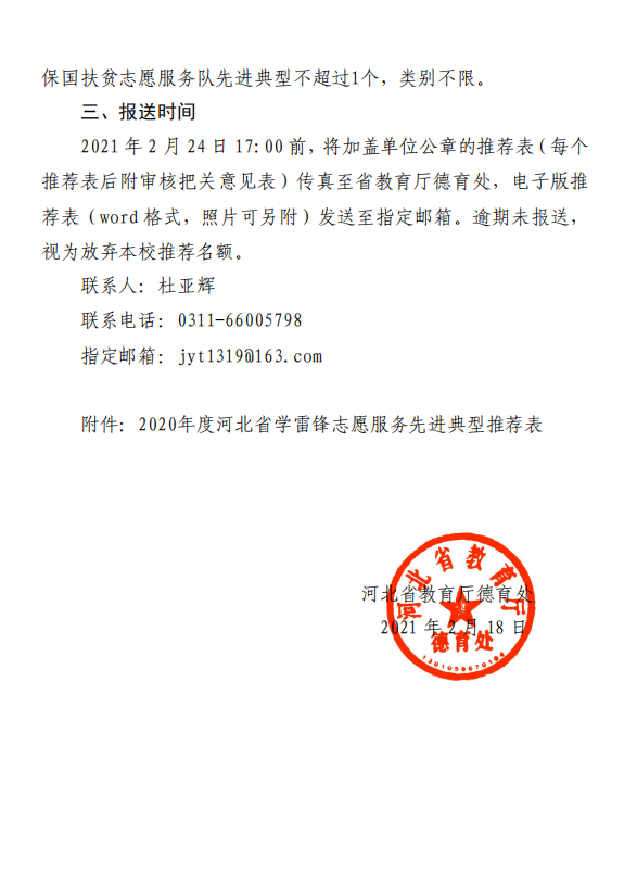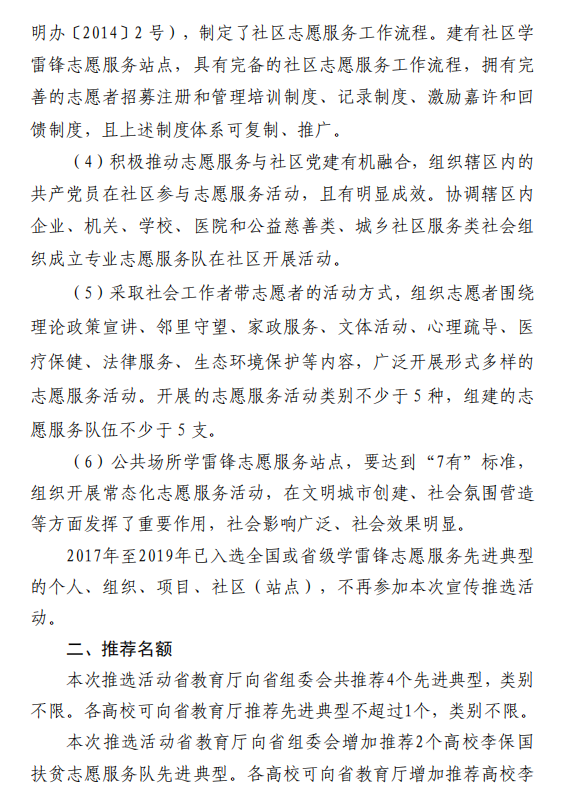 关于推选 2020 年度河北省学雷锋志愿服务 先进典型的通知